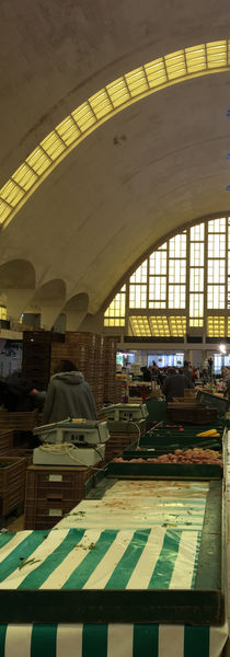 Les marchés français sont uniques. Leur installation est plus ou moins la même sur tout le territoire. De plus, ils utilisent un code relativement simple et reconnaissable. En effet un élément est frappant. On retrouve souvent les bâches, en extérieur et parfois même dans les halles couvertes. Ces bâches sont très souvent colorées. En règle générale, une couleur correspond à une typologie de produits. Ces couleurs sur les bâches sont lisibles par l’intervention de rayures. C’est un des code, du décor du marché. Tous ces codes, font du marché, un élément reconnaissable dans l’espace urbain.